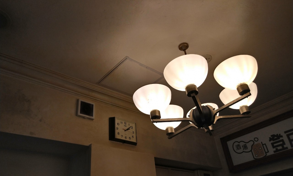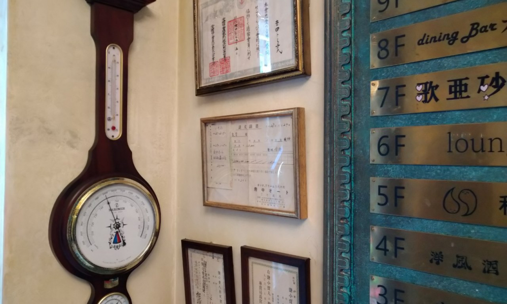 エレベーターホールには昔懐かしい新聞記事や注文書などが飾られていたり、新しいビルのはずなのに、わざと汚した壁や天井が不思議と落ち着く空間に。