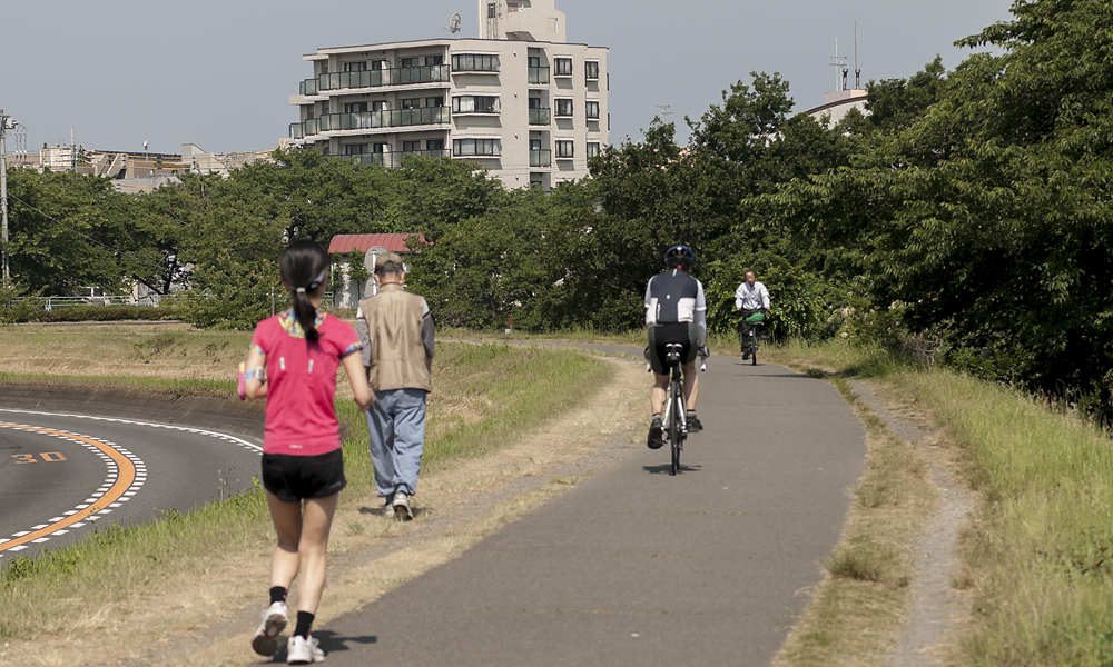 東京の2大サイクリングロードの1つ、多摩川サイクリングロードは、東京都羽村市から東京湾の羽田空港前にかけ、左岸と右岸にそれぞれコースが伸びています。東京と神奈川の間を抜ける都市部のコースでありながら、両岸は公園や緑地に恵まれ、名所、ランチ、休憩できるスポットが多いのも特徴で、休日には自然豊かな景色や心地よい川からの風を感じながらランニングやサイクリングを楽しむ方も多いスポットです。