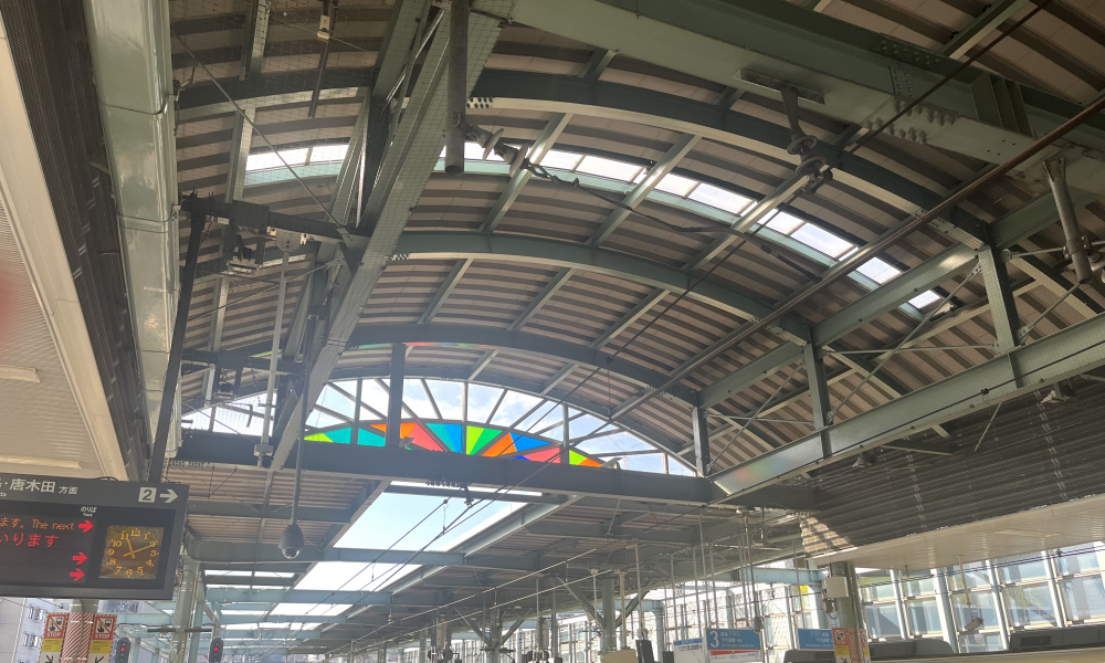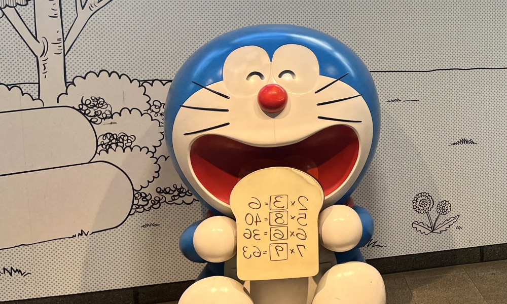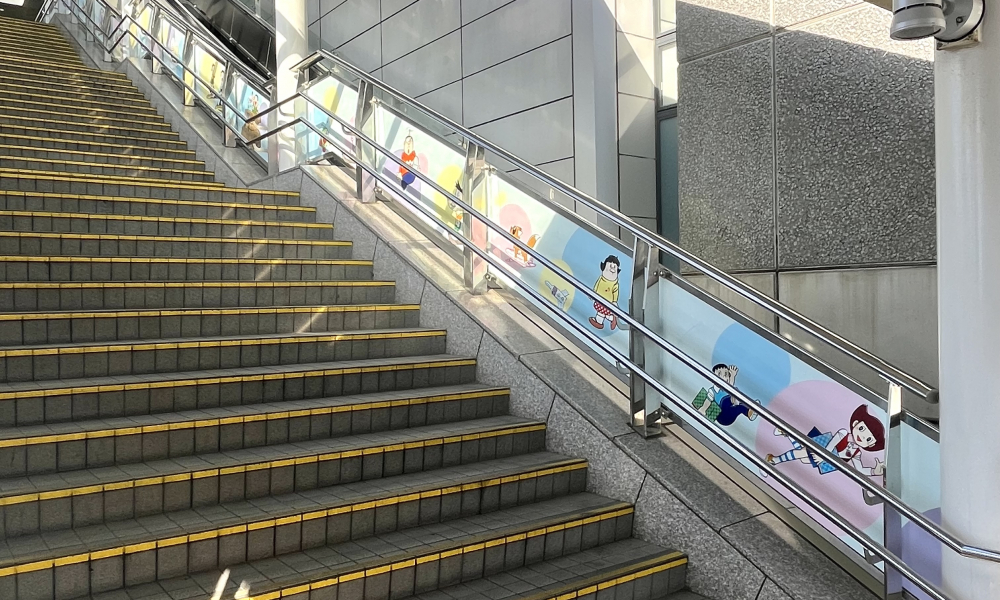 漫画「ドラえもん」のキャラクターたちによるお出迎えが印象的な登戸駅。