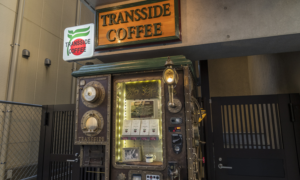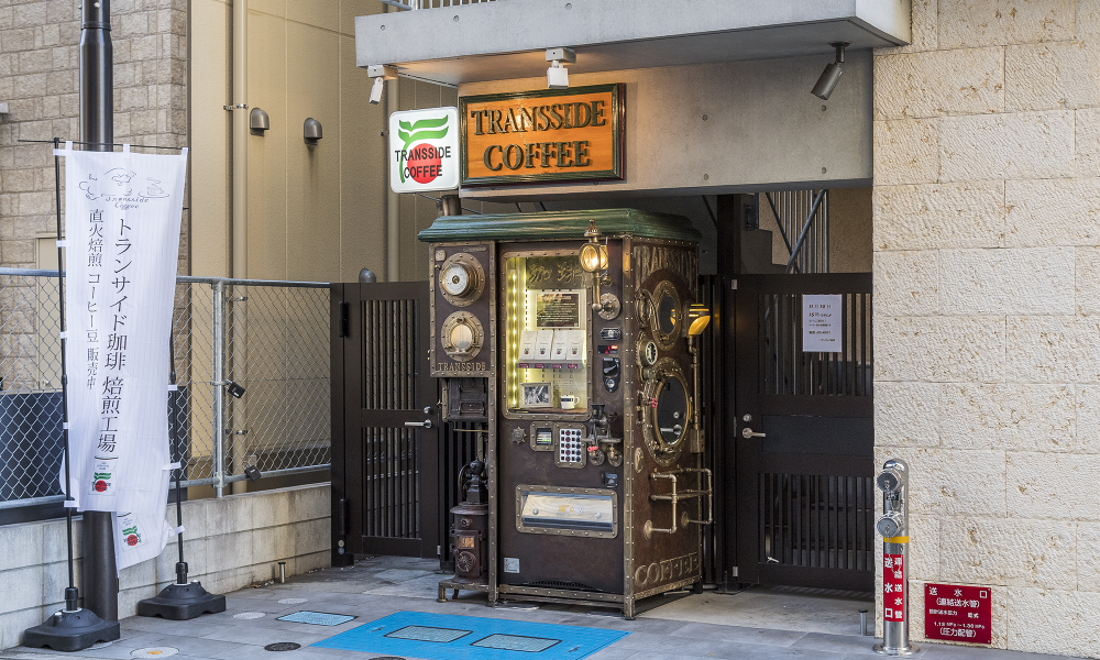 スチームパンクなデザインのトランサイド珈琲 自動販売機が登戸に。