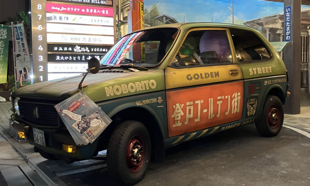 こちらはアトリエ・ダレル(洋画家亀山裕昭氏)プロデュースによるもの。こだわりの懐かしい昭和のアイテムは新しいビルと融合するためにと、細部にまでこだわった演出は訪れる度に新しい発見をもたらしてくれます。また、昔の登戸駅を壁画にて再現したり、エントランスは再開発前の登戸を思い出させるちょっとした博物館のよう。ここが「登戸ゴールデンビル」ではなくあえ「登戸ゴールデン街」としたのもなんとなく分かるような気がします。