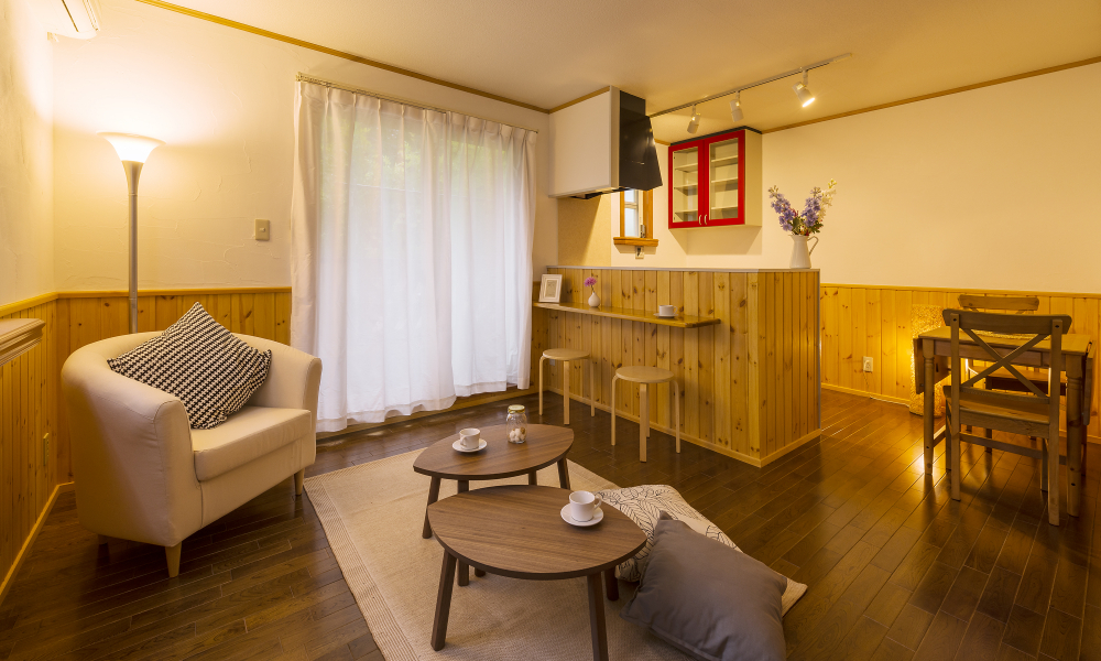 お部屋は一人暮らし、新婚さんにも人気の1LDK 。現在募集中のお部屋は、無垢材をふんだんに使用した床に壁、お風呂、トイレなど全リフォームされたフルリフォーム物件。こだわりがたくさん詰まったお部屋は日々の暮らしをワンランクアップさせてくれるものばかり。家へ帰るのが楽しみ!と思えるようなお部屋になっております。